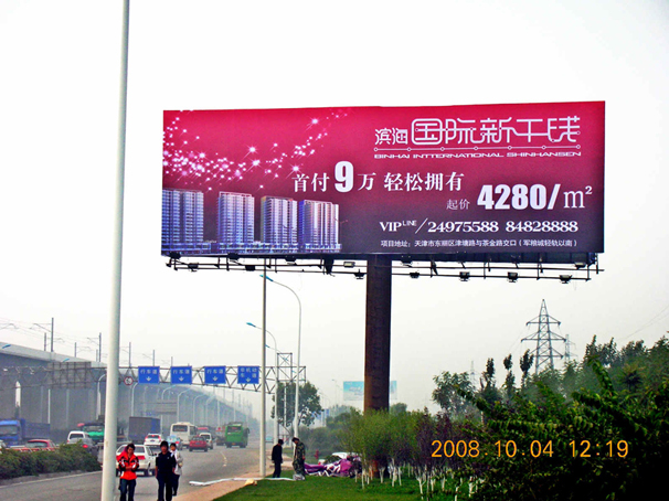 單立柱廣告單立柱廣告塔是一種戶外廣告形式,又稱擎天柱、廣告塔、高炮,T型牌一般聳立在道路兩邊,以高速公路居多。一般分為兩面牌及三面牌兩種主要的牌面。